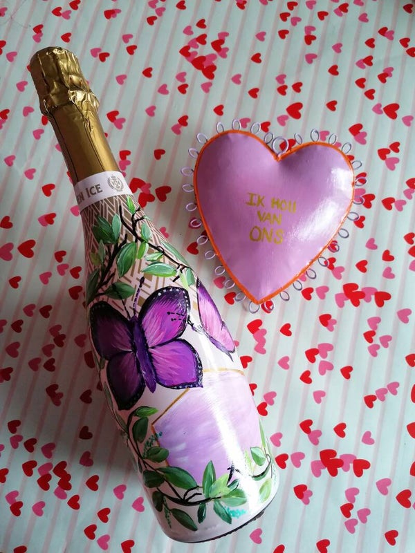 Er is ruimte overgelaten om de fles te personaliseren (zit bij de prijs inbegrepen)