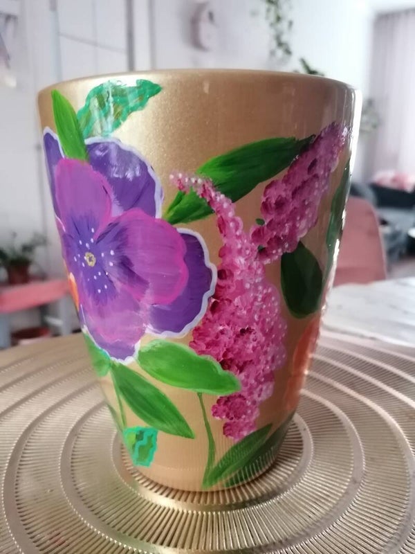 Rondom beschilderd met vrolijke bloemen op een ondergrond van goud
