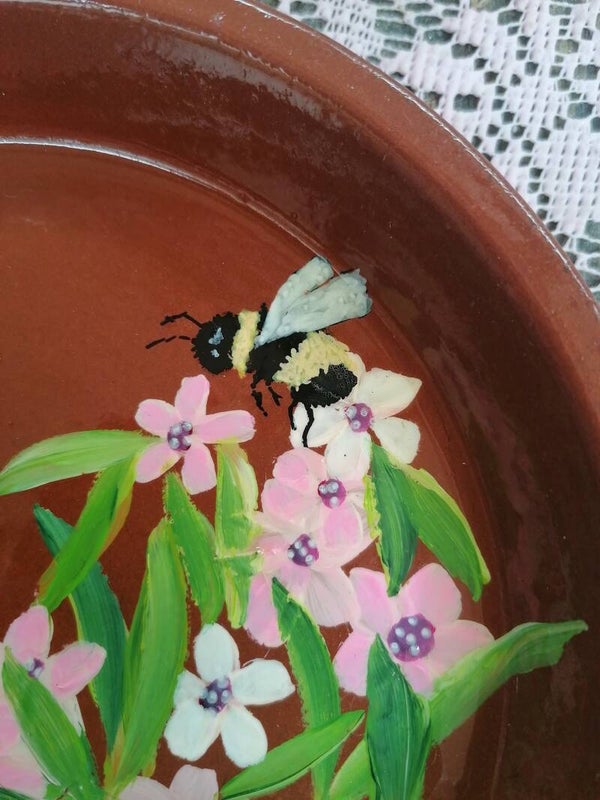 Handbeschilderde schotel met bijpassend vaasje ook handbeschilderd. Mooie fijne gedetailleerde bloemetjes, zoals al mijn creaties om blij van te worden!
