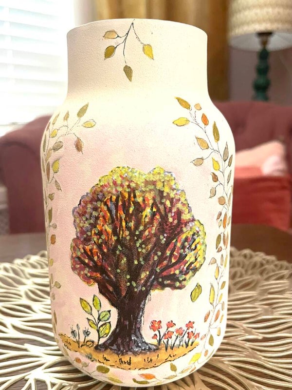 Dit prachtige vaasje is handbeschilderd/ getekend